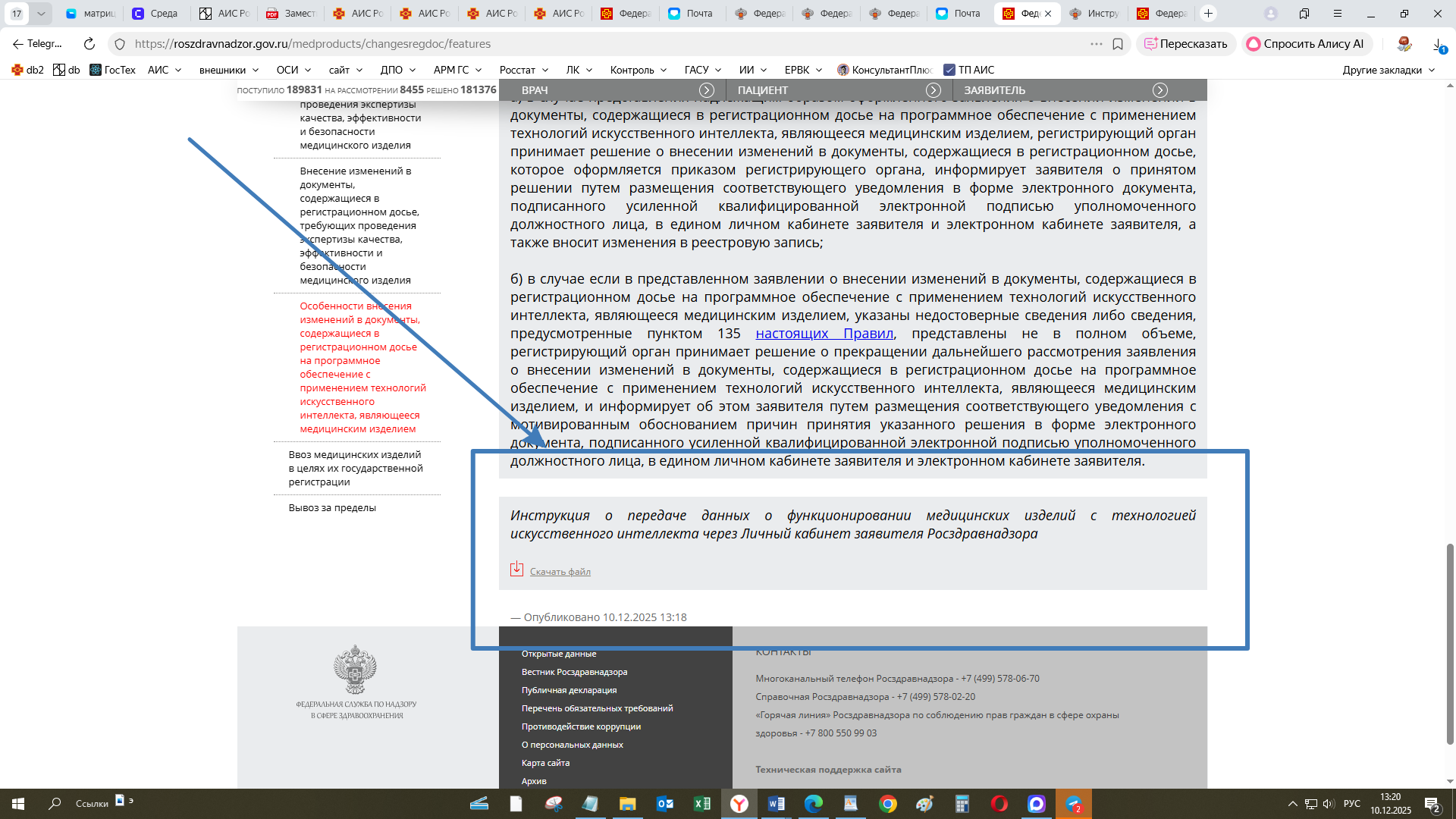 Инструкция о передаче данных о функционировании медицинских изделий с технологией искусственного интеллекта через Личный кабинет заявителя Росздравнадзора размещена по ссылке:
